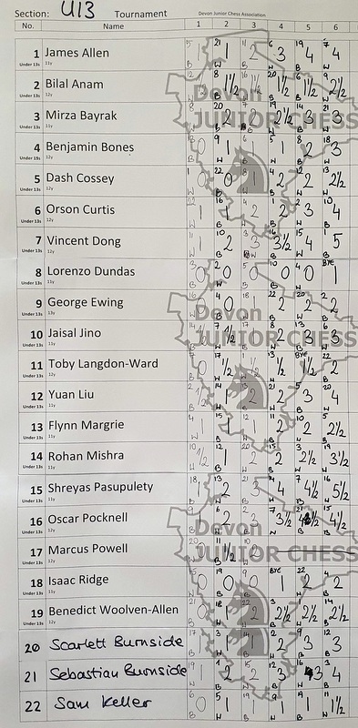 • U13: 1st Shreyas Pasupalety 5½/6; 2nd Vincent Dong 5; 3rd Oscar Pocknell 4½