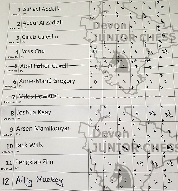 U18: 1st Torquay BGS 'A' 19½ points; 2nd= Devonport HSB, Colyton GS 18 points