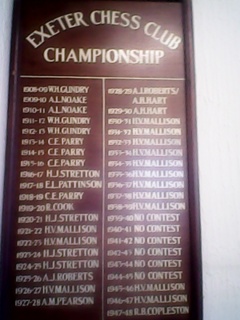 A new event for the older juniors. Once they are too old for the U14 team, there aren't so many opportunities for our junior players, so we have put this event on for them. It's a training tournament with coaching between rounds from Dominic Mackle, supported by a grant from the Mallison Chess Educational Trust. HV Mallison was many times the champion of Exeter Chess Club, acted as Devon Country Chess Match Captain and on his death left sums of money to Exeter Chess Club and Devon County Chess Association; the Devon fund is for junior chess training.